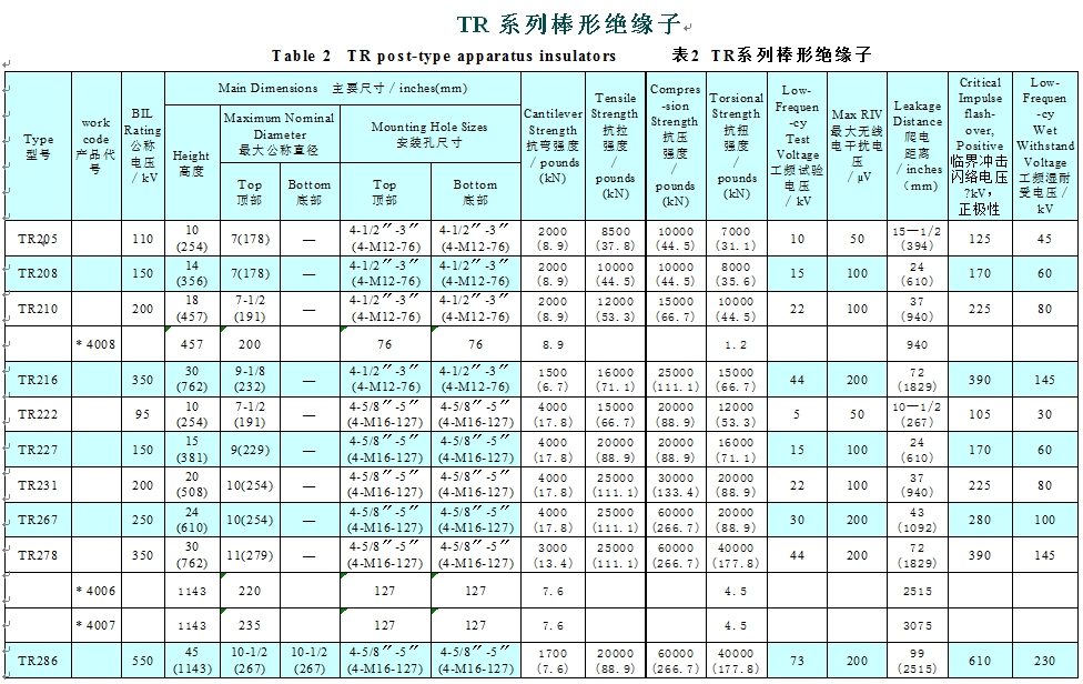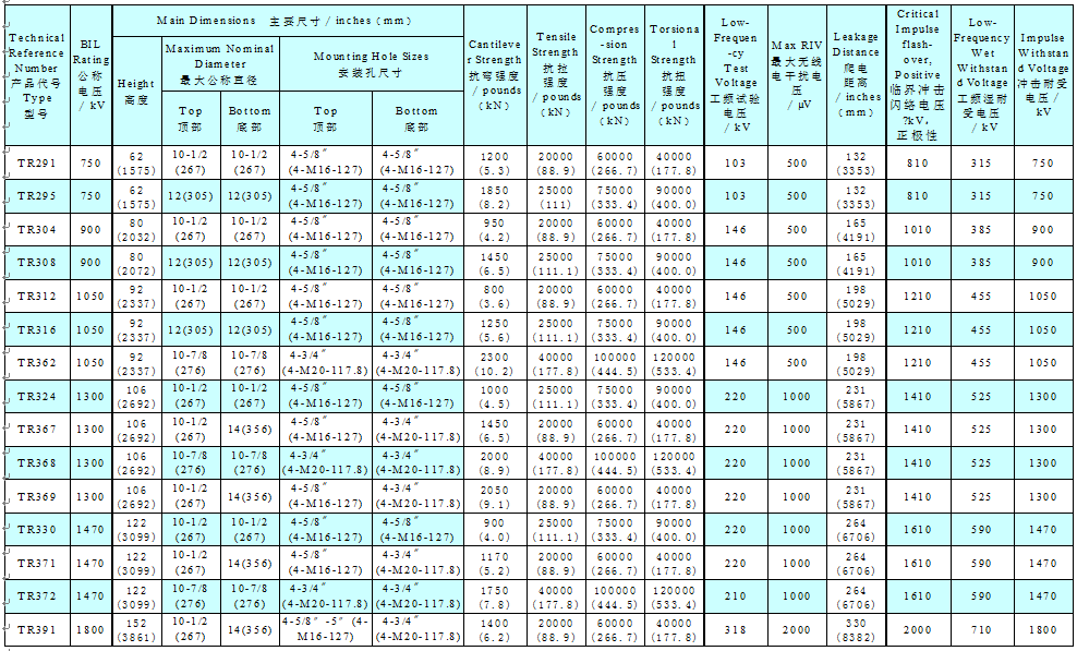Outdoor post insulators apply to normal voltage of power transmission and distribution a.c. system 40.5~363kV, power distribution unit, power statin electrical equipment as current-carrying part and supporting.