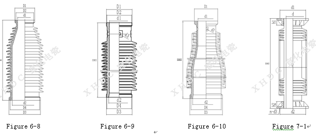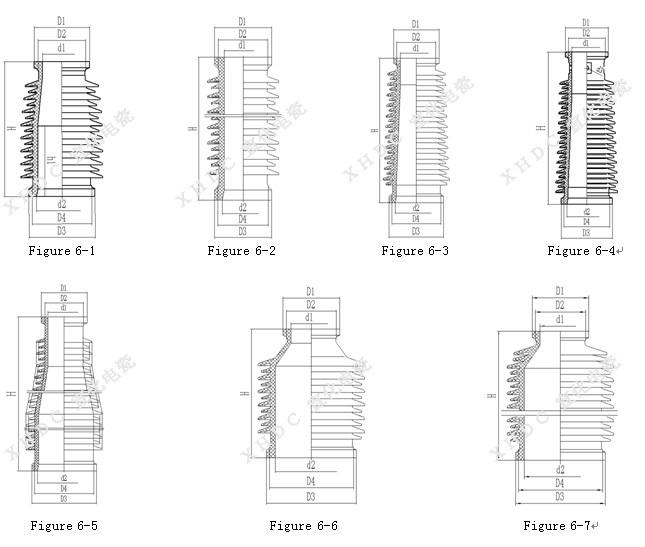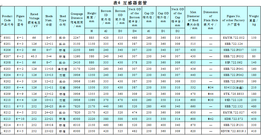 耐污型及耐重污型瓷套的伞形采用了经人工污秽试验优选的大小伞相间的平伞形结构和伞下带棱的伞形结构,伞形设计完全符合lEC60815,由于小伞处于大伞的保护之下不易受污染,且大伞间间距较大,改善了伞间放电特性,提高了瓷套的耐污性能。有的瓷套还设计了带断水伞的结构。经污秽试验及长期运行,我公司生产的瓷套可适用于0.036~0.15 mg/cm2盐密条件下使用。