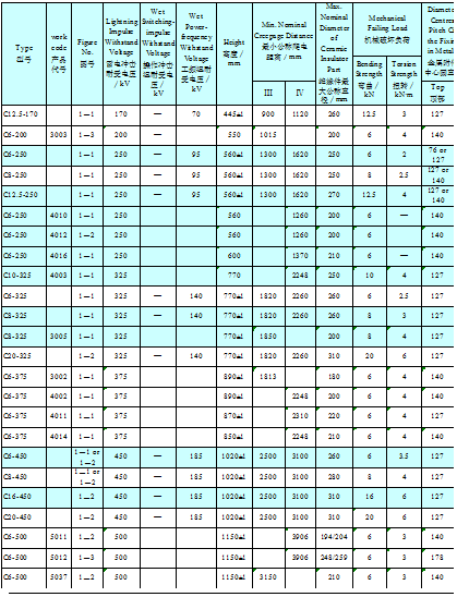 依据国内外不同客户对产品的要求,宣化电瓷生产的棒形支柱瓷绝缘子有以下产品类型: